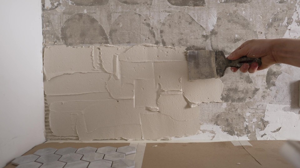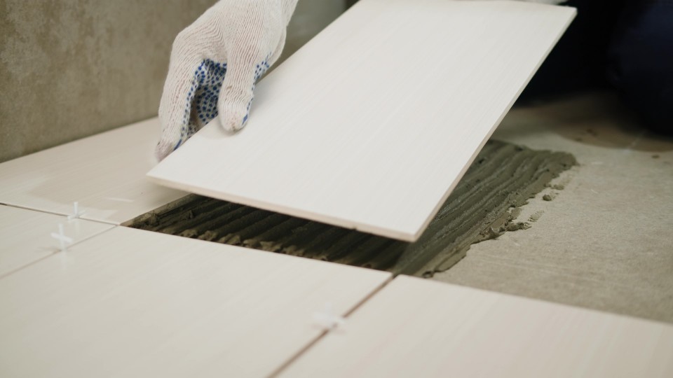 下地がデコボコしていたり弱っていたりすると、タイルが浮いてきたり割れたりしやすくなってしまいます。そこで、私たちはまず下地を平らで丈夫な状態に調整します。